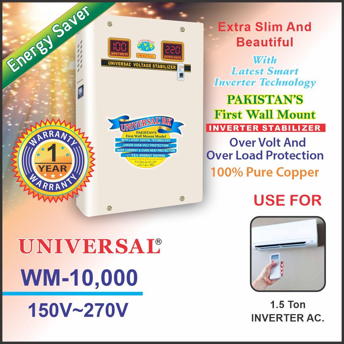 WM 10000 is a wall mount voltage stabilizer for 1.5 ton inverter Air conditioner. Built with Advanced IC Technology Design for improved input voltage correction from 150 volt.